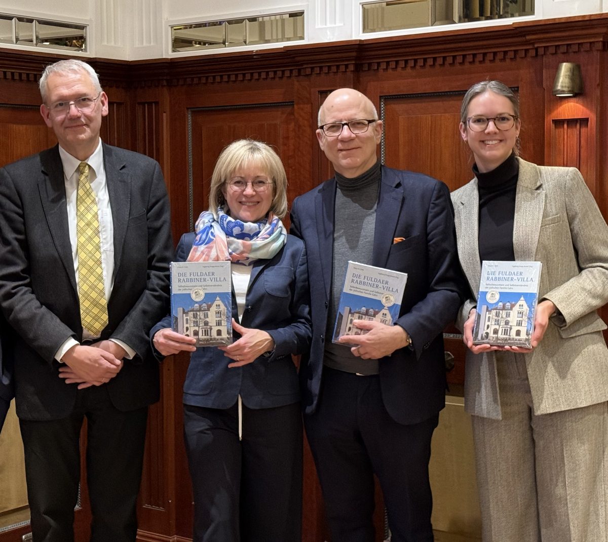 Die verantwortlichen Akteure der Lesung in der historischen Fuldaer „Rabbinervilla“: Der Fuldaer Kulturamtsleiter Dr. Thomas Heiler, Ingeborg Kropp-Arend, Dr. Martin Doerry und Oberbürgermeister a.D. und Vorsitzender des Fuldaer Geschichtsverein Gerhard Möller (von links). Foto: Ralph Leupolt.